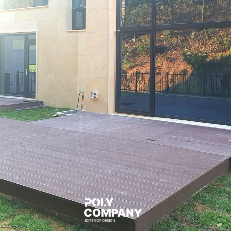 안녕하세요, 인성 바른 시공업체 폴리컴퍼니입니다. 오늘은 충주에서 진행한 합성목재 데크 공사 사례를 정리해 보았습니다. 기초 작업부터 마감까지, 전체 과정을 간략하게 소개해 드릴게요. 시공 개요지역: 충주 제품 규격: 25T × 150W (클립형) 색상: 다크 브라운 면적: 39㎡ 1. 시공 전 현장 상태 공사한 지 오래되지 않은 깔끔한 전원주택이었지만, 현관 앞 바닥 데크가 없는 상태였습니다. 이로 인해 흙먼지가 실내로 바로 유입 바닥 오염 증가 외관상 완성도 부족 이라는 문제점들이 있었죠!! 생활 편의성과 미관 개선을 위해 데크 공사가 필요했습니다. 2. 기초 공사 과정 1. 기초석 설치 흙바닥 위에 바로 데크를 시공하지 않고, 콘크리트 기초석을 매립해 하중을 분산시켰습니다. 이후 데크 하부 구..