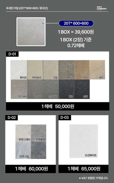 포세린타일 20T 두께와