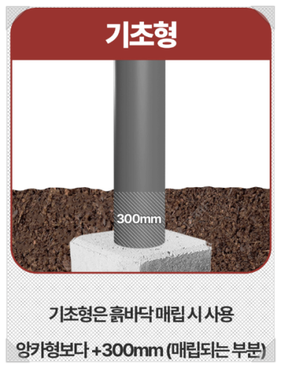 앙카형보다 기둥이 약 300mm 길게 제작됩니다.