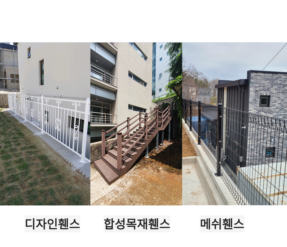 (합성목재휀스, 디자인휀스, 메쉬휀스, 석재데크, 목재데크 모두)