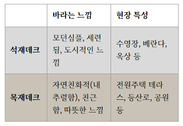 합성목재이기 때문에 당연히 석재데크보단 목재데크와 잘 어울리겠죠?