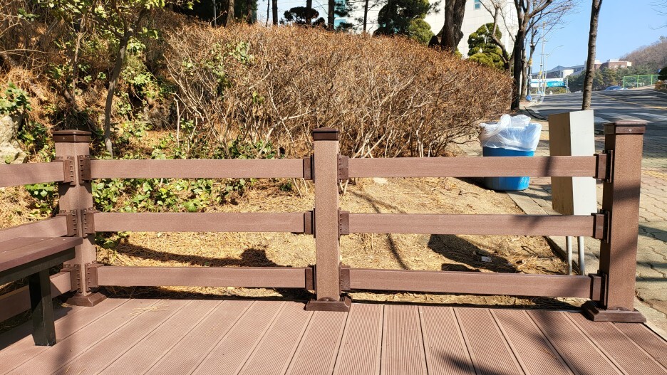 일반적인 목재휀스가 아닌 목분과 고분자수지를 결합해 만든